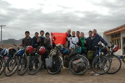 Ni âgées, ni blesséesIl faut dire qu'en général, les Chinoises grimpent en montagne en minijupe, sac à main et hauts talons ! Néanmoins dans la descente, un couple sourd-muet, la cinquantaine, nous suit, ils sont sportifs, pleins d'entrain et drôles. Puis, de retour à l'hôtel, nous rencontrons un couple de cyclotouristes chinois dans leur 4'000ème km en Chine. Il y a dans ce pays de la graine de cyclovacanciers, puisque dans les deux mois qui suivent, nous en croiserons une soixantaine, plus qu'en Italie ! Nous apprenons d'ailleurs que la seconde plus grande course après le "Tour de France" est en Chine (vrai ?)