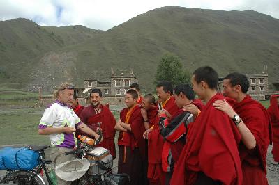 Juste après une bagarre avec deux gros chiens bien méchants, nous croisons un lama français sympa qui nous propose l'hospitalité du logement et repas dans sa guesthouse proche du temple de Dzogchen, malgré son absence. En quittant, nous laissons tout de même un peu d'argent que le lama associé local trouve insuffisant... car les Occidentaux sont riches, dit-il ! Fait divers qui casse un peu l'invitation spontanée !
