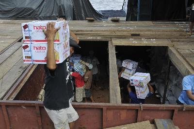 Des milliers de tonnes à charger !A Chiang Saen en Thaïlande, un cargo de commerce chinois sur la berge du Mékong embarque des tonnes de matériel en tous genres. Y’a t’il encore une place pour deux Suisses, deux vélos et quelques sacoches ? Mr. Tang, le gestionnaire du bateau, affalé à l’ombre d’un parasol sur le quai, donne son accord sans hésitation. Départ demain à 14h, ça va durer quatre jours, ça va coûter 500 RMB soit 45€ par personne, repas compris. Le Chinois ne parle pas anglais, nous ne parlons pas chinois, tout va bien, voilà donc tout ce que nous avons compris ! Le mousse nous accompagne à la douane thaïlandaise qui nous tamponne la sortie du pays. On ne sait pas encore où nous serons débarqués.