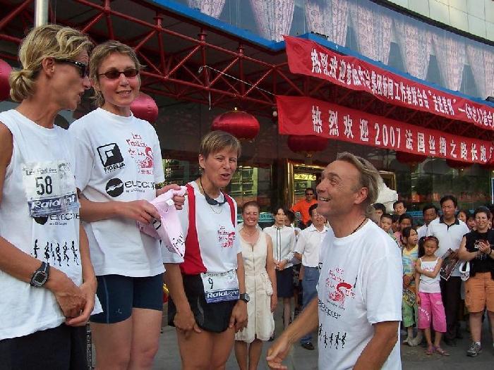 Remise de prix par Eric à Zhongwei lors de la course "Les Foulées de la Soie" organisée chaque année par l'équipe française de SDPO avec la devise : "Si courir était le seul but, nous passerions à côté de moments inoubliables". | |